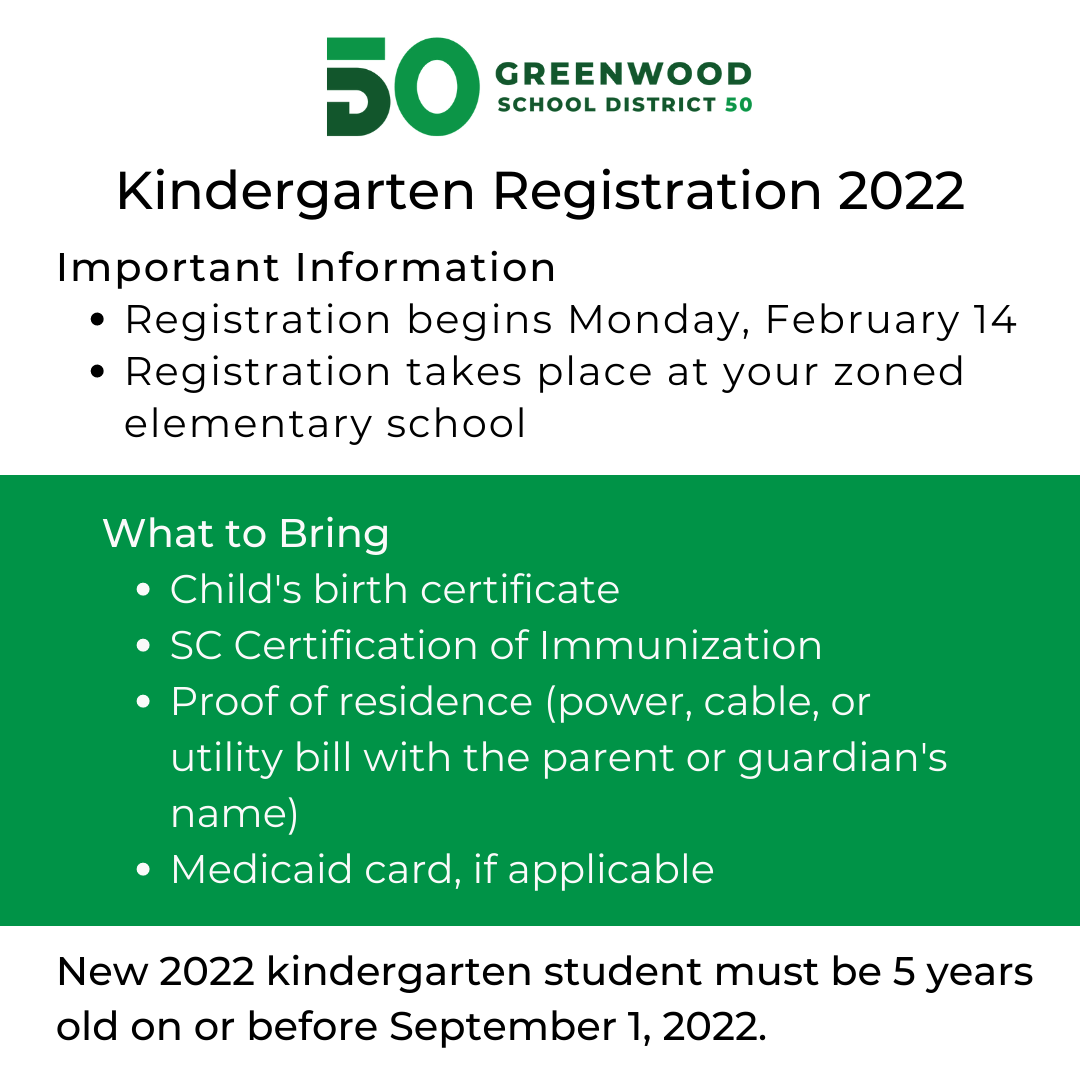 New 2022 kindergarten student must be 5 years old on or before September 1, 2022.