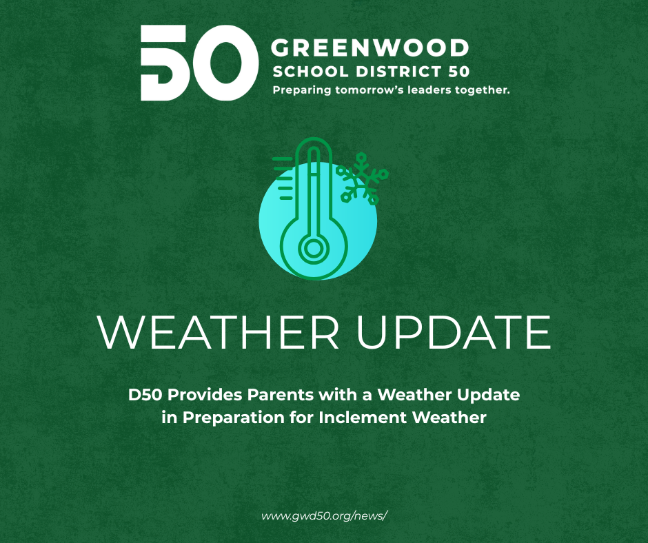 Greenwood School District 50 is continuing to closely monitor weather forecasts and predictions for this weekend and will remain in contact with the Greenwood Emergency Preparedness Center and the National Weather Service.