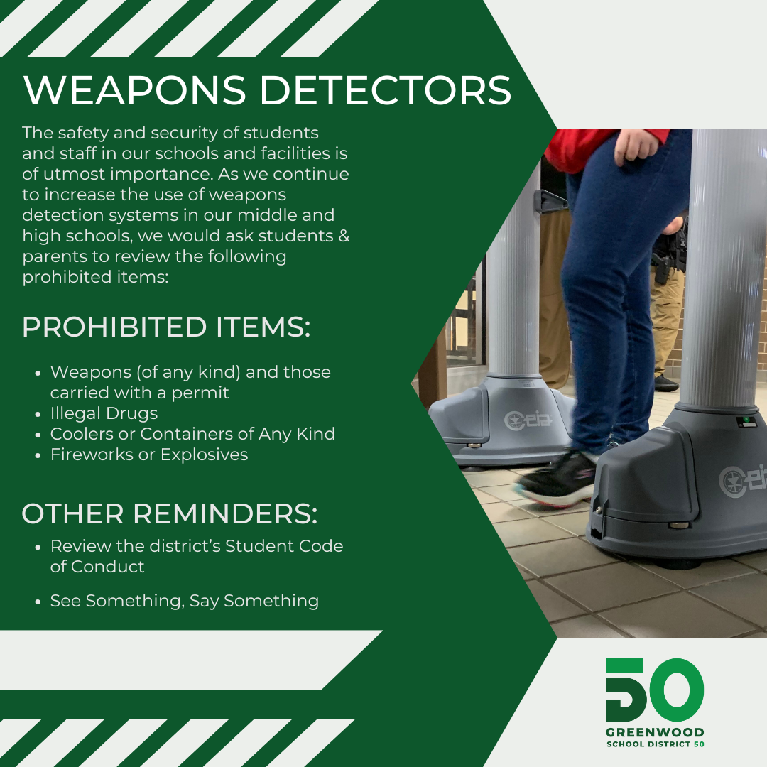 As we continue to increase the use of our weapons detection systems in our schools, please note the following reminders.